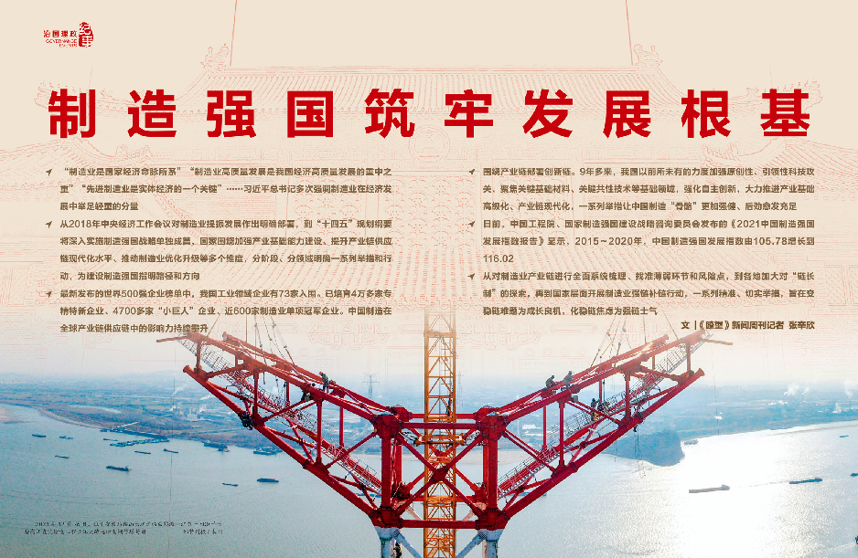 制造业是立国之本、强国之基。中华民族伟大复兴,需要夯实物质基础、筑牢大国制造这个坚实支撑。
