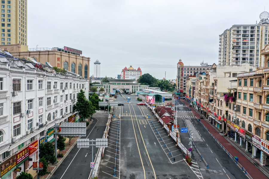 ↑这是疫情发生后的东兴口岸及附近商业街(2021年12月28日摄)。