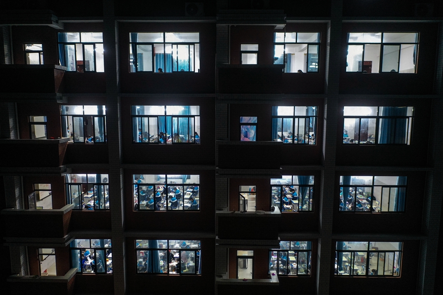↑1月5日晚,东兴中学高三学生在上晚自习。