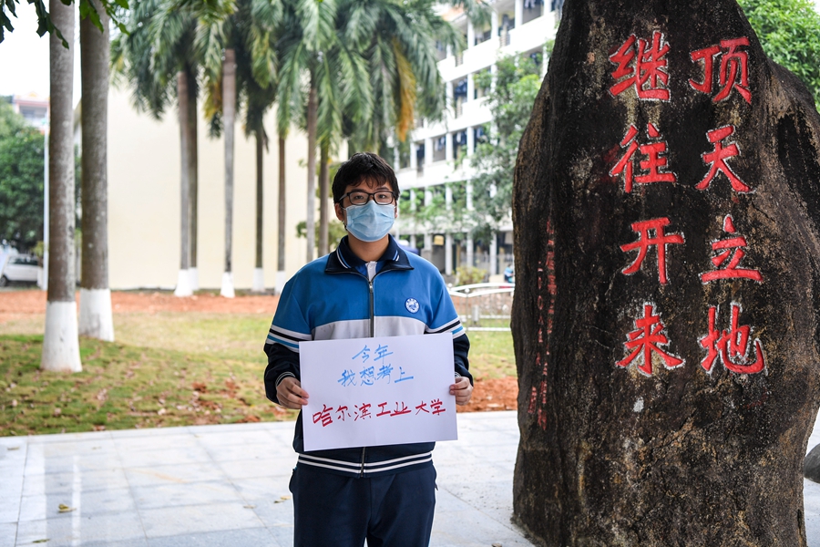 “我今年想顺利考上哈尔滨工业大学,以后当一名飞行器设计师,这是我从初中时就立下的志愿。”