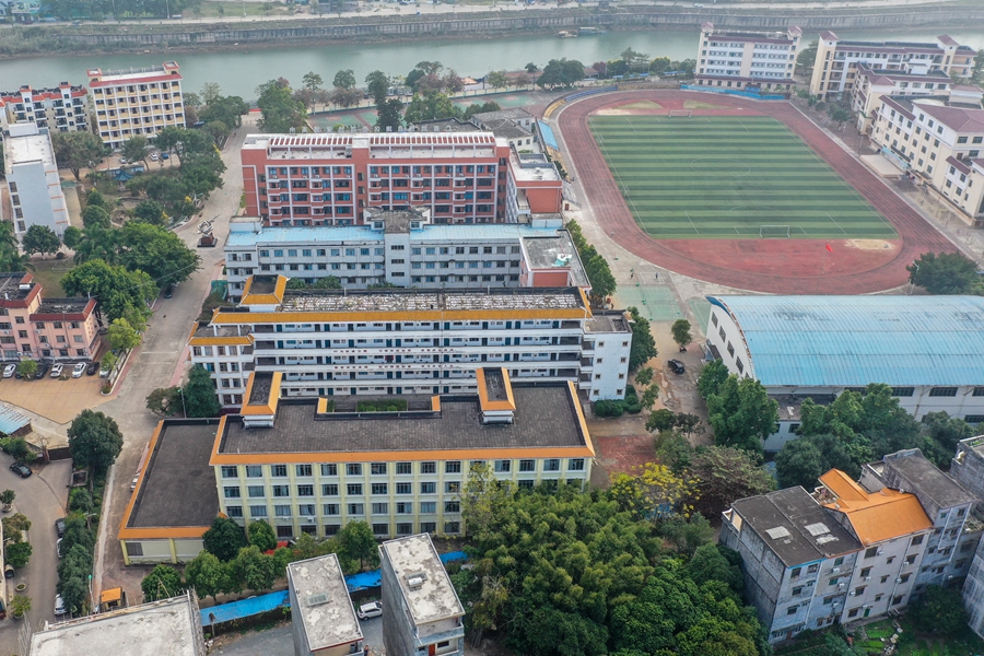 ↑这是坐落在北仑河畔的东兴中学(1月5日摄)。