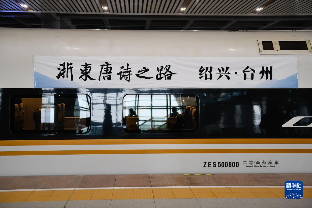 剡溪蕴秀异,欲罢不能忘。归帆拂天姥,中岁贡旧乡……在装饰一新的首发列车上,一首首这样的古诗,记录着杭台高铁沿线的各个站点。
