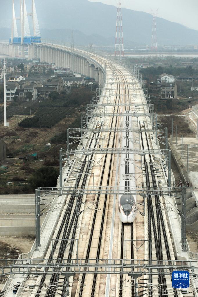 1月8日,杭台高铁首发列车行驶在浙江台州境内。新华社记者 黄宗治 摄