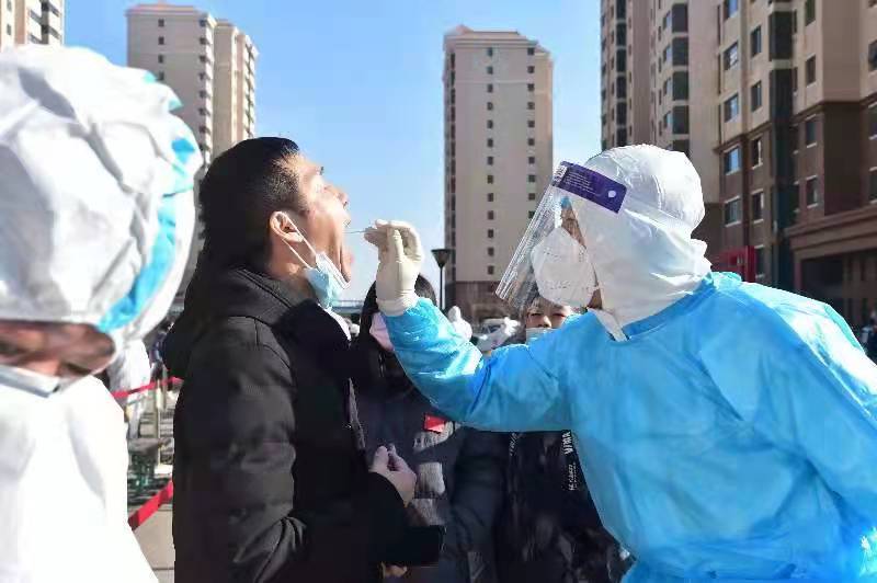 天津市津南区居民正在社区内进行核酸检测。新华社记者刘惟真 摄