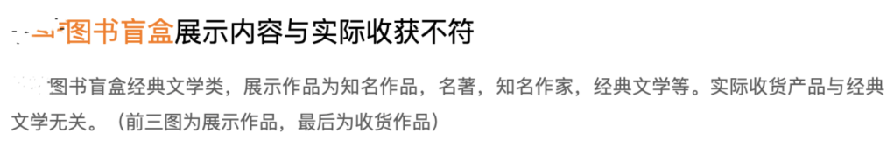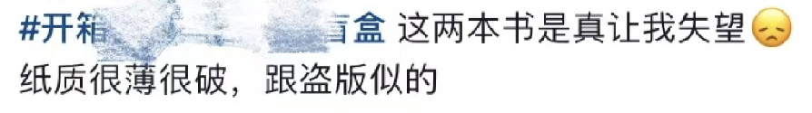 北京林女士曾两次购买“图书盲盒”,体验都不好。她告诉记者,一次在直播间购买,盲盒中的书籍与主播介绍的类型完全无关,“都是一些很偏门的书。”还有一次从电商平台购买,“里面书页有折痕,还有错别字。”