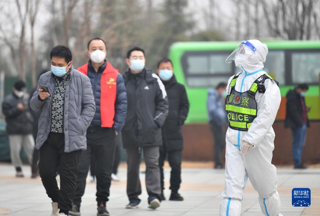 1月10日,西安市公安局浐灞生态区分局民警在辖区内一处核酸检测点执勤。
