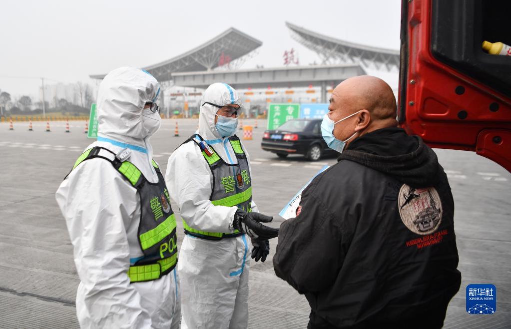 1月10日,西安市公安局浐灞生态区分局民警在西安市绕城高速新筑收费站查验车辆通行证件。