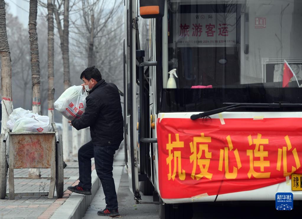1月10日,在禹州市寨子社区,工作人员将蔬菜包卸车。