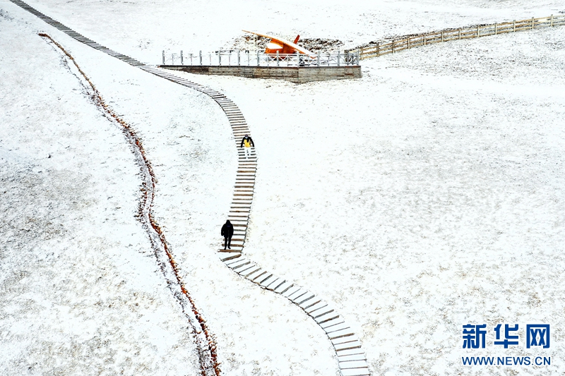 ,寒潮来临,在浙江省安吉县山川乡的云上草原,银装素裹,美轮美奂。雾凇和雪