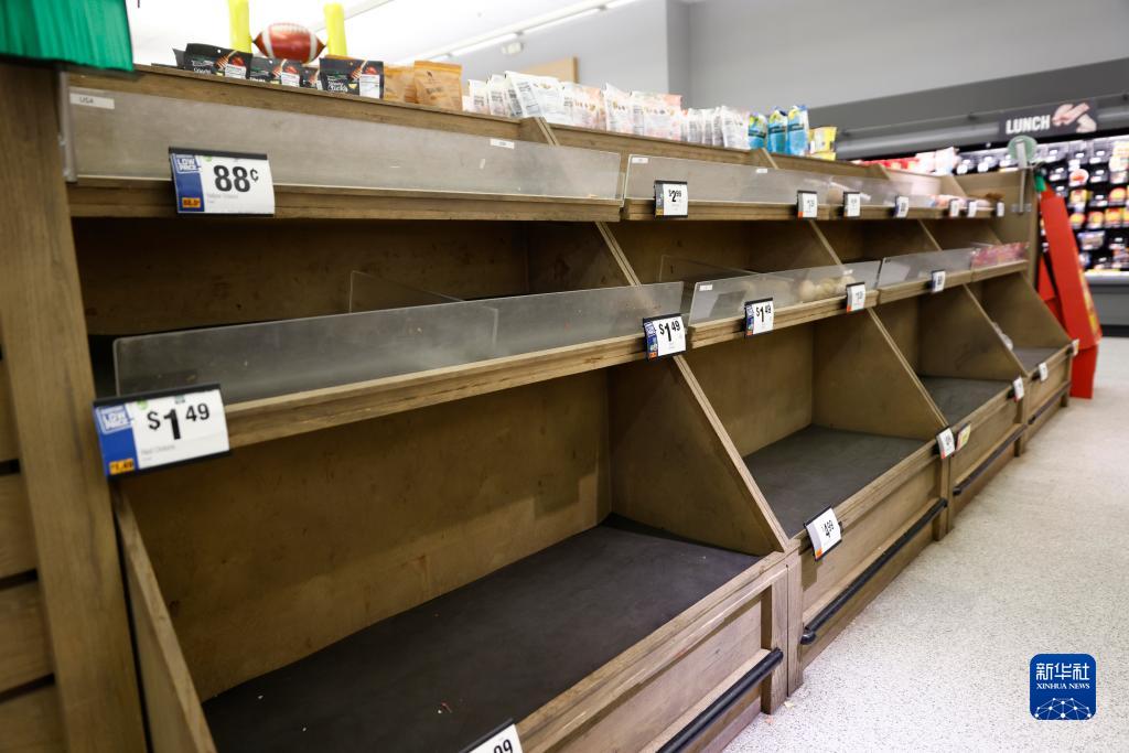 1月10日,在美国首都华盛顿,一家商店货架上的商品寥寥无几。