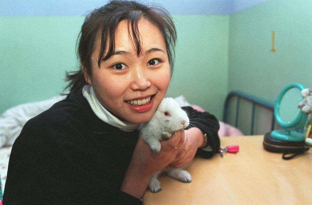 陈露和她的宠物小白兔。袁满摄(1996年2月1日发)