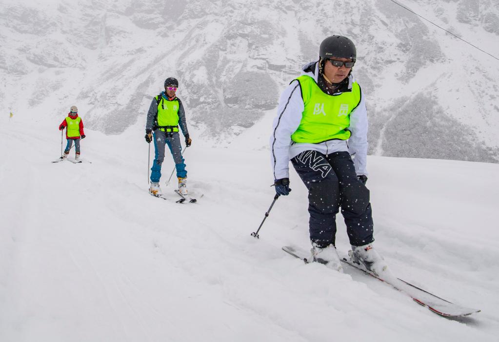冰雪运动爱好者体验滑雪登山。新华社记者 孙非 摄