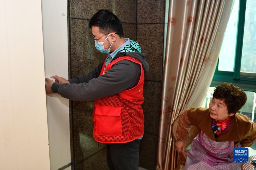 智慧养老综合服务平台的工作人员(左)在浙江省湖州市吴兴区爱山街道龙庭小区一位居民家中安装“一键帮助”服务设备(2021年11月17日摄)。“一键帮助”服务是爱山街道数字化居家养老服务项目之一。老人需要帮助时轻轻按下,智慧养老综合服务平台的工作人员就能第一时间获取信息,联系老人了解其需求,提供相应服务。目前,爱山街道70周岁以上老人已实现“一键帮助”系统全覆盖。新华社记者 黄宗治 摄