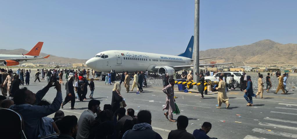 2021年8月30日,美军全部撤离阿富汗,美国发动的长达20年的阿富汗战争以失败告终。这是2021年8月16日,大量民众聚集在阿富汗喀布尔机场试图离开阿富汗。(新华社发)