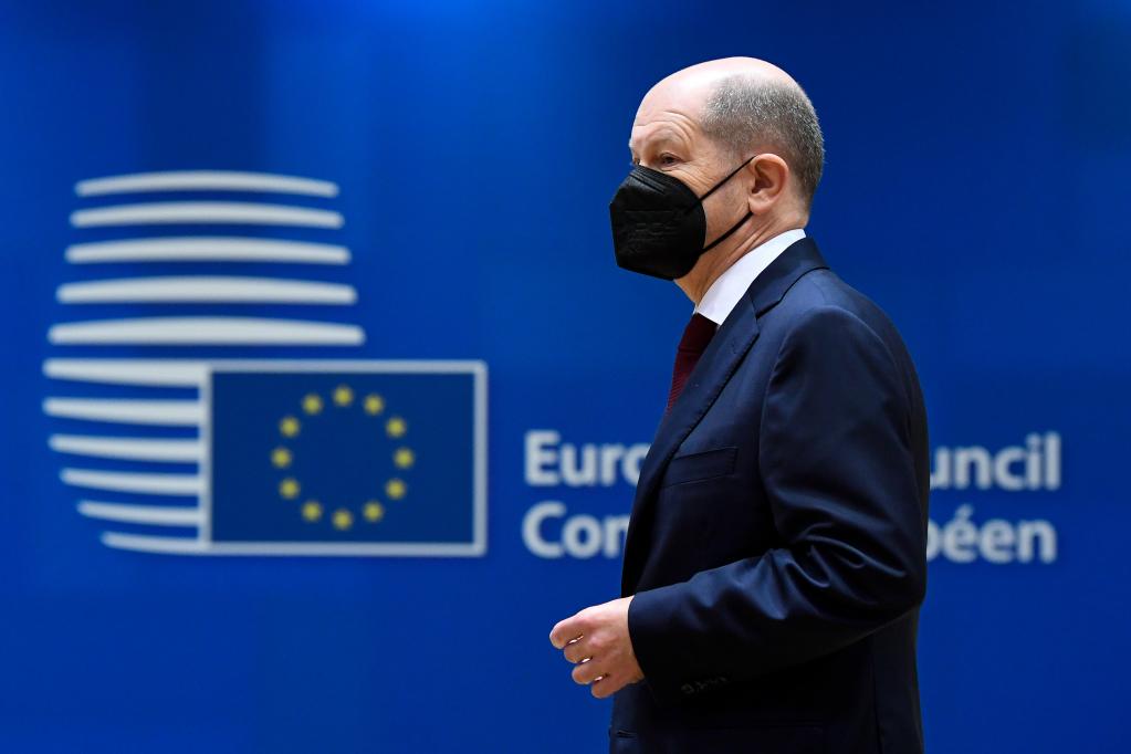2021年12月16日,德国总理朔尔茨抵达位于比利时布鲁塞尔的欧盟总部,准备出席欧盟峰会。(欧盟供图)