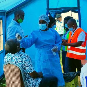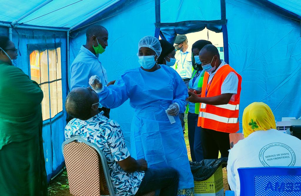 1月8日,乘客在科摩罗莫埃利岛的机场接受新冠病毒检测。(新华社记者董江辉摄)