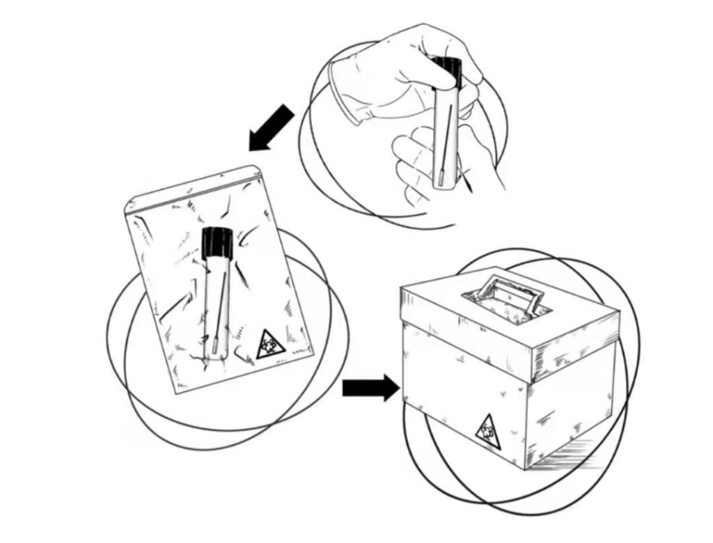 这一步大家都懂,“捅嗓子眼儿”“捅鼻子眼儿”。采集后将拭子头浸入病毒保存液中保存,全城大筛查中通常是10个拭子一组进行保存。