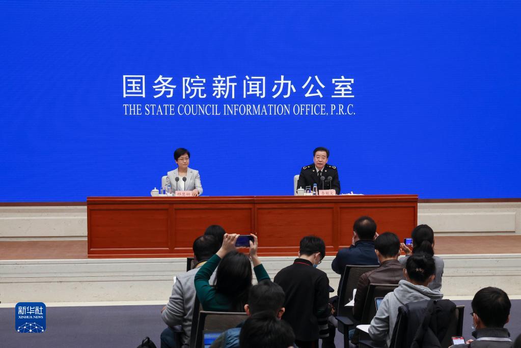 1月14日,国务院新闻办公室在北京举行新闻发布会,请海关总署新闻发言人、统计分析司司长李魁文介绍2021年全年进出口情况,并答记者问。新华社记者 殷刚 摄