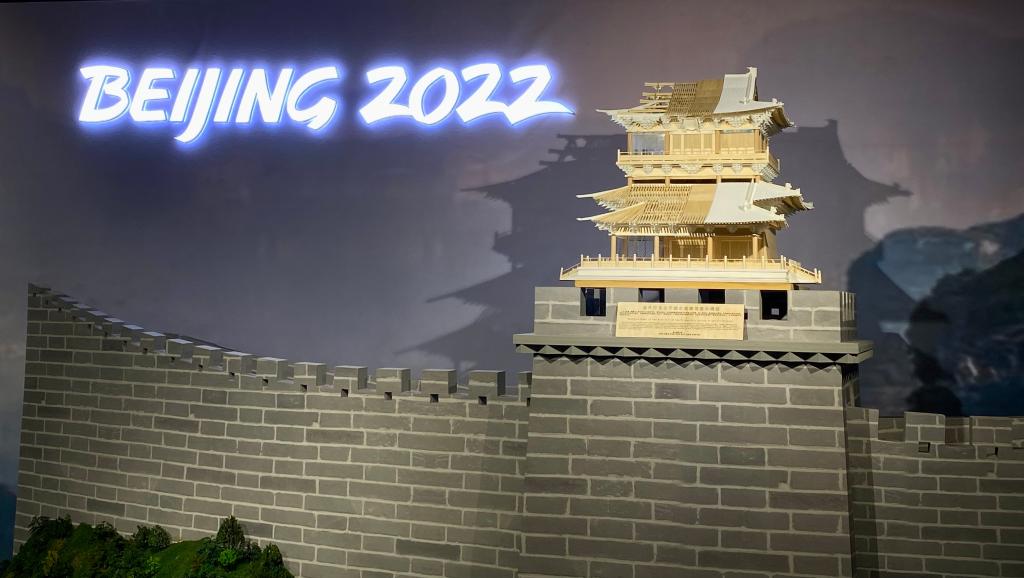 一座70厘米高的古代宫殿模型,与书写着“Beijing 2022”字样的背景墙相映成趣,一场穿越古今的文明礼赞在河北张家口冬奥村文化中国展厅上演。