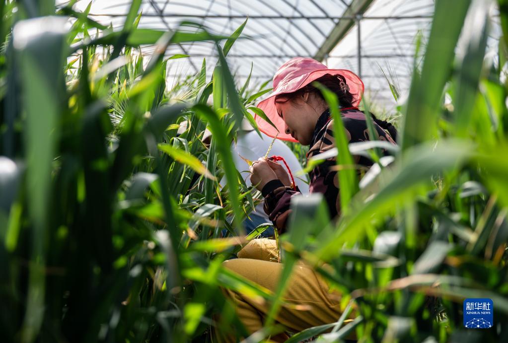 1月11日,元谋县青稞育种和加代扩繁基地的工作人员在为青稞授粉。新华社记者 王冠森 摄