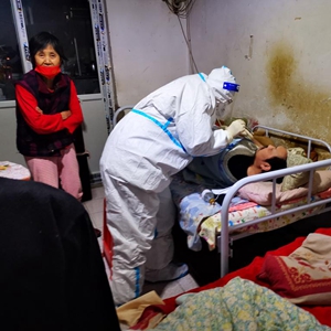 1月13日凌晨,在天津市河东区,援藏医疗队成员入户为居民做核酸检测。新华社发(受访者供图)