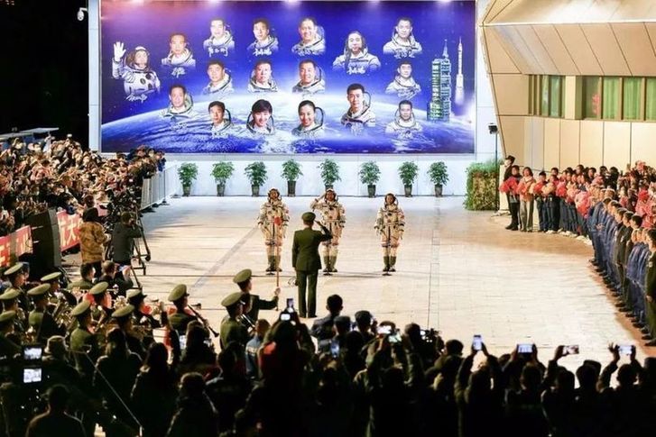 2021年10月15日21时40分,神舟十三号载人飞行任务航天员乘组出征仪式,在酒泉卫星发射中心问天阁广场举行。21时42分,中国载人航天工程总指挥、空间站阶段飞行任务总指挥部总指挥长李尚福下达命令,翟志刚、王亚平、叶光富3名航天员领命出征,即将开启为期6个月的飞行任务。