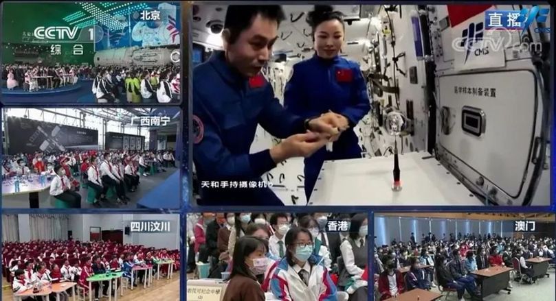 此次太空授课活动进行了全程现场直播,在中国科技馆设地面主课堂,在广西南宁、四川汶川、香港、澳门分设4个地面分课堂,共1420名中小学生代表参加现场活动。