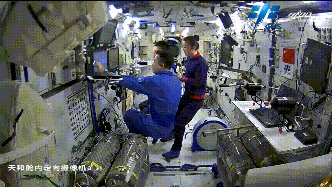 在顺利进驻空间站天和核心舱后,北京时间2021年10月17日9时50分,神舟十三号航天员乘组成功开启货物舱舱门,并顺利进入天舟三号货运飞船。