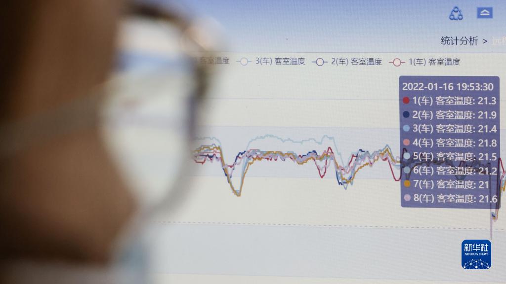 1月16日,地勤机械师通过远程监控设备查看动车组的实时状态。