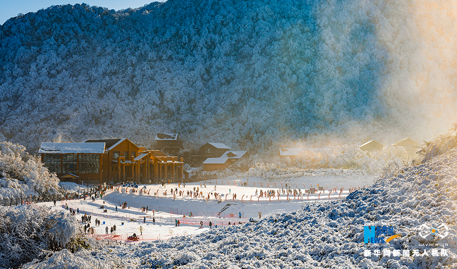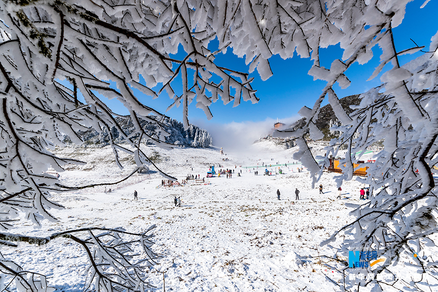 在重庆,冬季的金佛山,不会让想看雪的人失望。自入冬以来,重庆金佛山陆陆续续下了好几场大雪,雪落景成,天光云影落日如海,色彩斑斓壮美如画,吸引不少游客前来观雪、赏雪、玩雪。新华网发(赵志 摄)