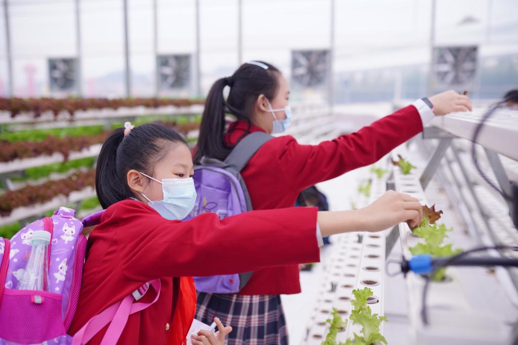 图为广州市黄埔区怡园小学学生在研学活动中体验新式蔬菜种植。(受访单位供图)