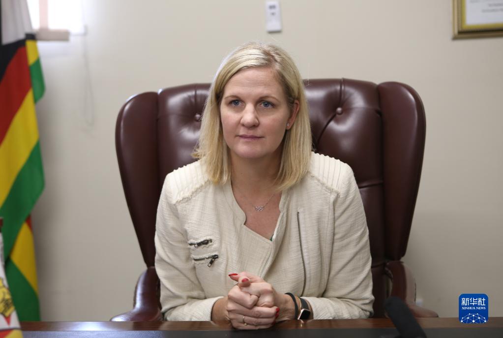1月18日,津巴布韦青年、体育、艺术和娱乐部长柯丝蒂·考文垂在哈拉雷接受新华社记者采访。新华社记者 张玉亮 摄