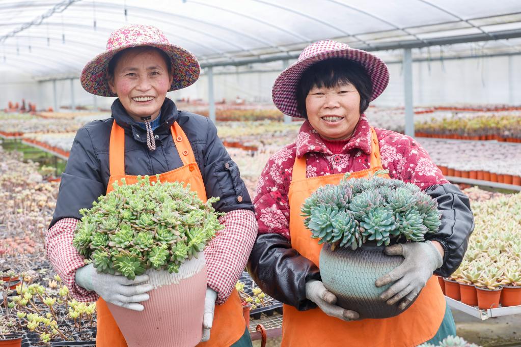 图为景宁县东坑镇以“专业合作社+农户”模式发展多肉植物产业。(景宁县委宣传部供图)