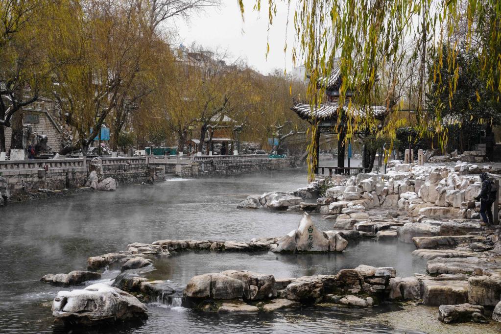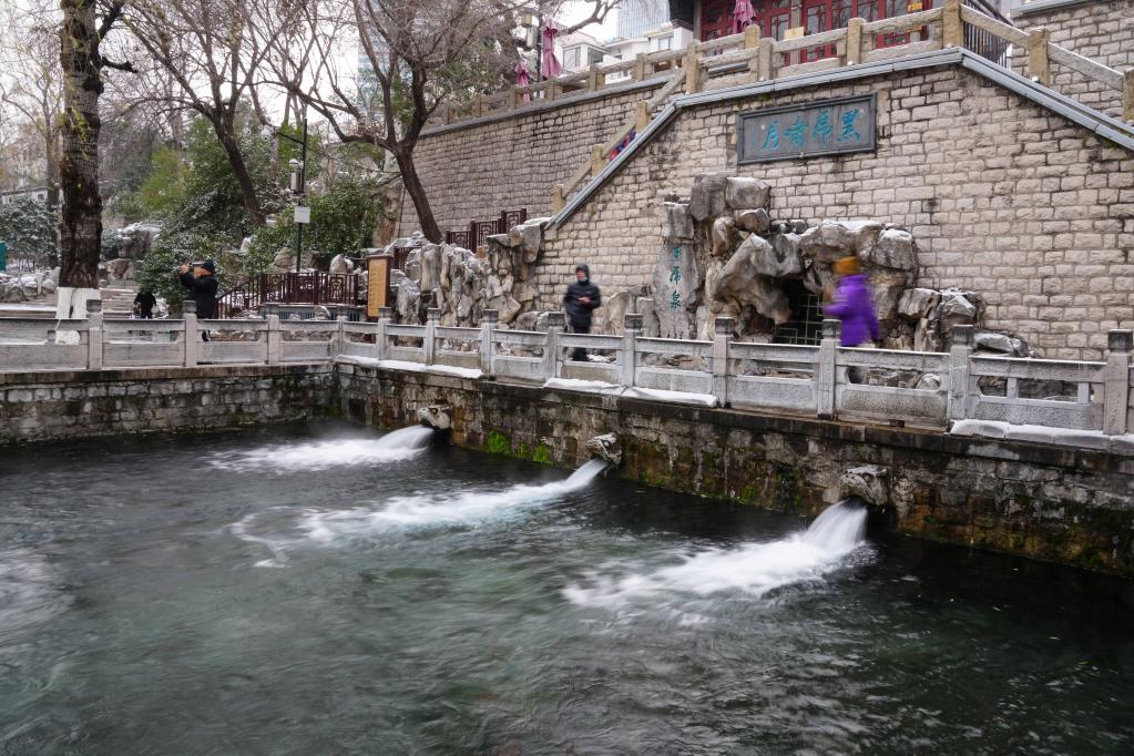 雪后喷涌的济南五莲泉美不胜收。(新华社记者朱峥 摄)