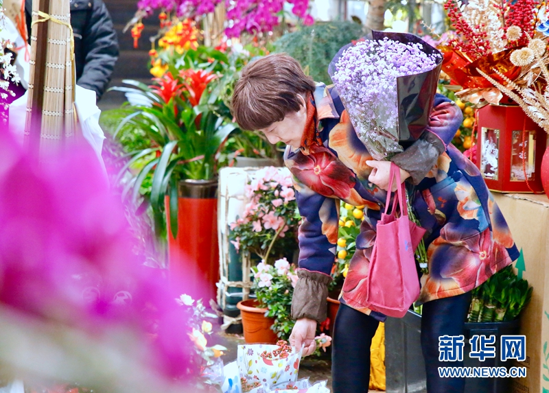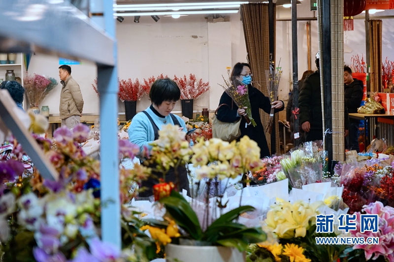 放眼望去,多个品种的花卉姹紫嫣红、争奇斗艳。市场内热闹非凡,许多市民走出家门,前来选购心仪的花卉,打算为春节增添点“仪式感”。有些年宵花盆栽上,挂满了精致小巧的吉祥物,装饰得分外喜庆,寄托着人们求吉纳福的心愿。置身花海中,感受浓浓的年味。你家买年宵花了吗?(孙姝颖 唐杨 邱麦)