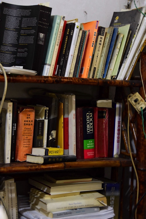 更狭窄的一间屋子是小宇的卧室,屋内一窗、一床、一桌、一柜、一书架。书架上零散堆放着书籍,更多是不同语种和版本的辞典。小宇戴着一副黑框眼镜,唇边一层薄须。绝大多数时刻,他就这样没有表情地坐在这里,面对着电脑。