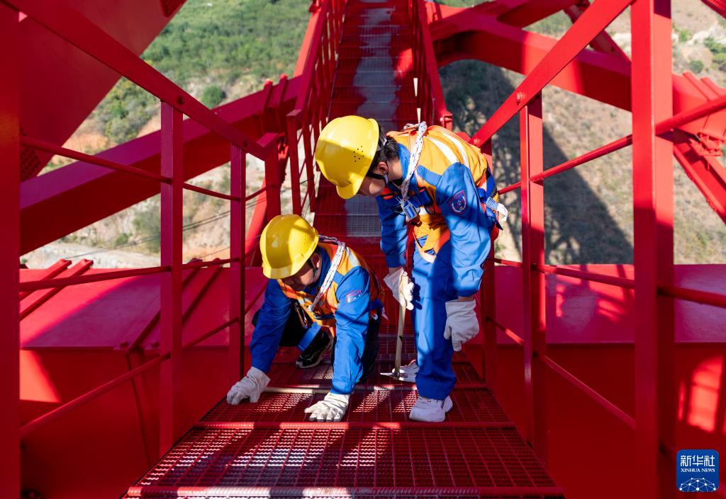 今年28岁的施鹏彬是昆明铁路局普洱基础设施段工务维修技术中心的一名桥隧工,日常工作是对中老铁路控制性工程元江双线特大桥进行检修。元江双线特大桥长约832米,最高的3号桥墩达154米,相当于50多层楼房的高度。红色钢桁梁飞架在灰白的桥墩上,远处望去,跨越元江的大桥在群山间格外壮美。