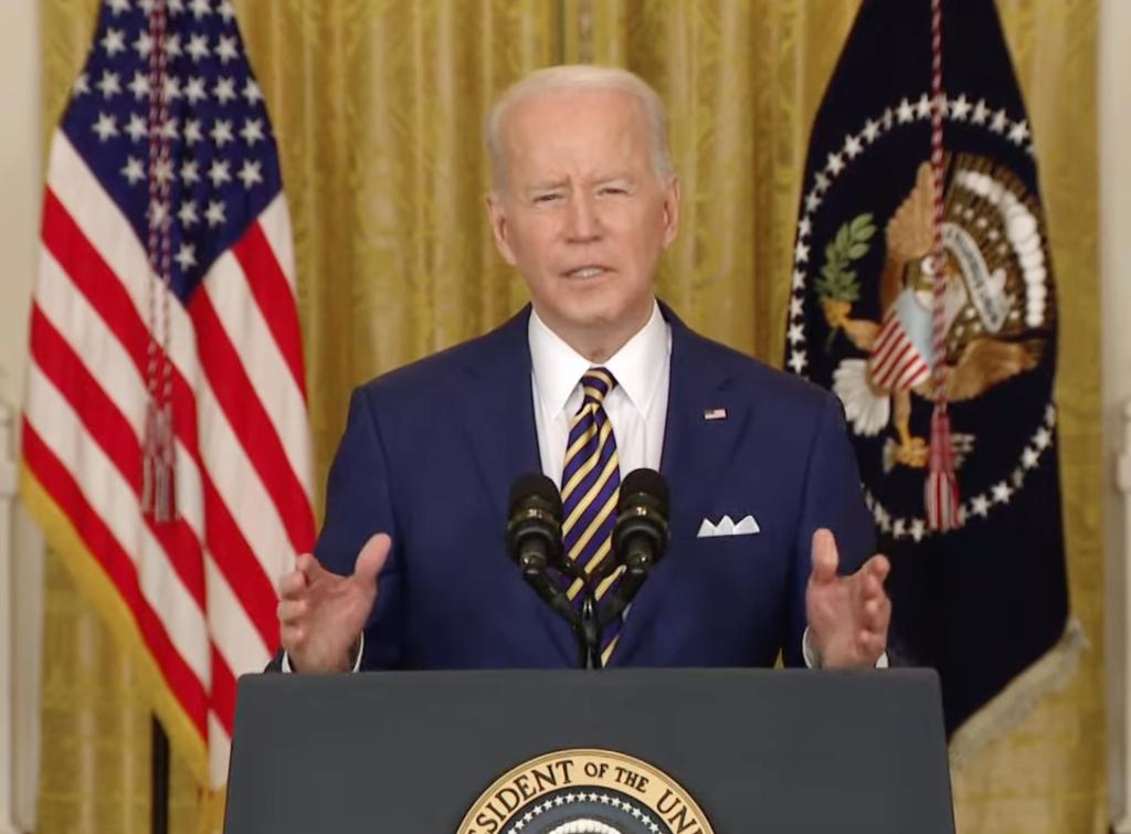 1月19日,美国总统拜登在华盛顿白宫召开记者会(视频截图)。(新华社发)