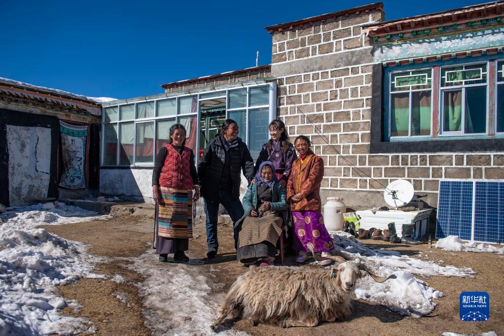 旦增卓玛(右二)和家人们一起合影(1月18日摄)。新华社记者 孙瑞博 摄