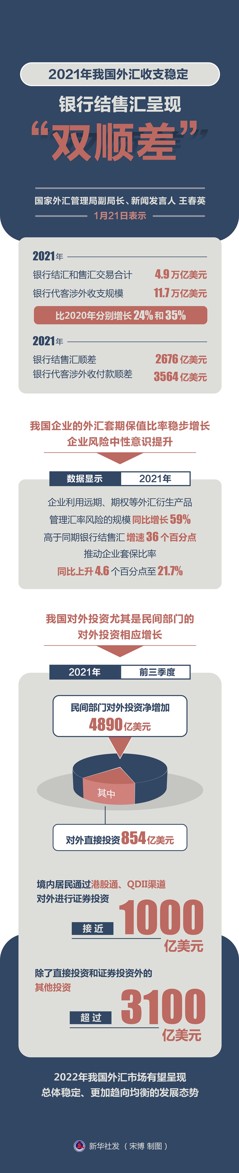 图表:2021年我国外汇收支稳定 银行结售汇呈现“双顺差” 新华社发 宋博 制图