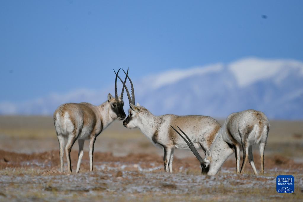 隆冬时节,藏羚羊、野牦牛、藏野驴等“高原精灵”在可可西里觅食嬉戏。可可西里总面积4.5万平方公里,平均海拔4600米以上,蕴藏着丰富的野生动物资源。2016年,可可西里国家级自然保护区整体划转至三江源国家公园,成为三江源国家公园的重要组成部分。