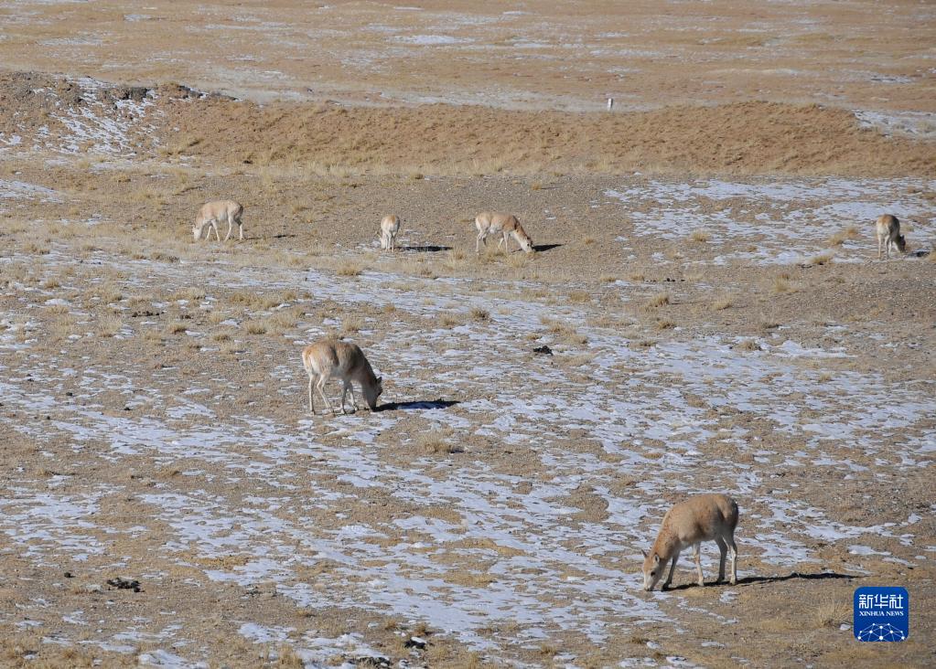 隆冬时节,藏羚羊、野牦牛、藏野驴等“高原精灵”在可可西里觅食嬉戏。可可西里总面积4.5万平方公里,平均海拔4600米以上,蕴藏着丰富的野生动物资源。2016年,可可西里国家级自然保护区整体划转至三江源国家公园,成为三江源国家公园的重要组成部分。
