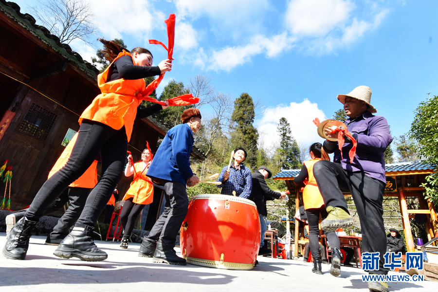 新华网重庆1月22日电(韩梦霖)“薅草了……”“来啦!”近日,在重庆市酉阳土家族苗族自治县楠木乡红霞村,院坝里热闹非凡,30多名村民齐聚在此,排练薅草锣鼓、酉阳花灯等市级非物质文化遗产表演节目,迎接即将到来的春节。