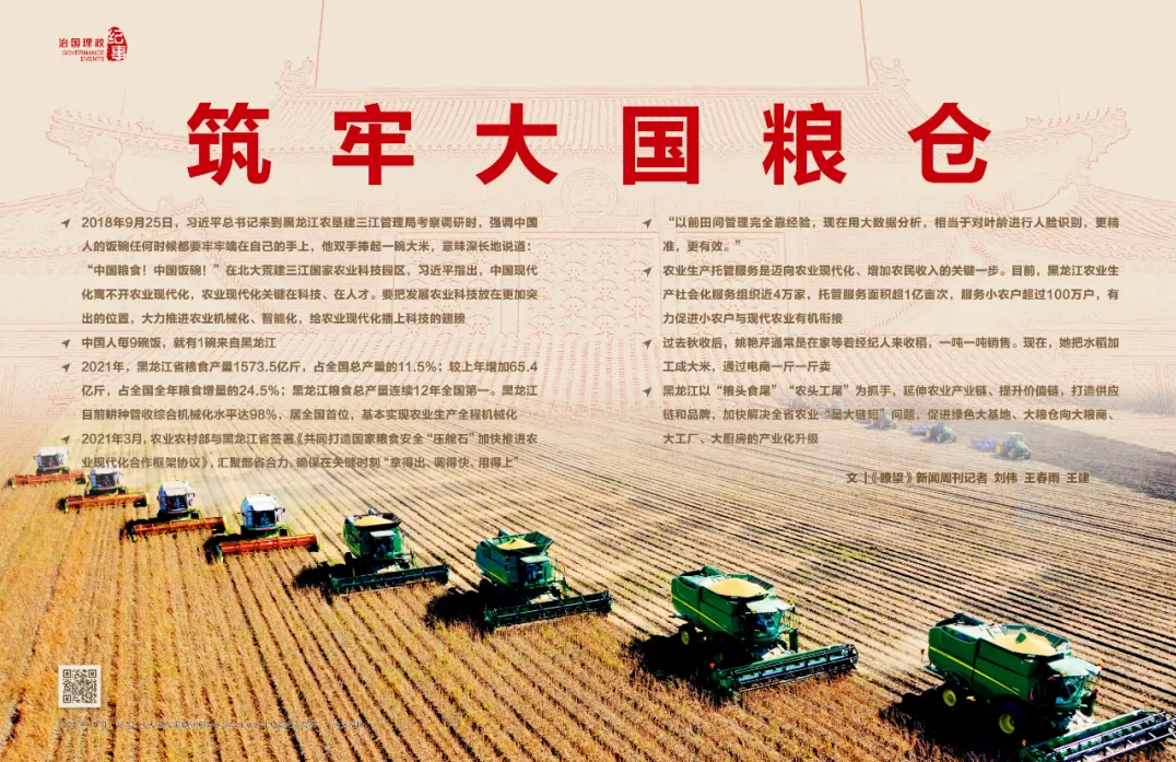◆ 2021年3月,农业农村部与黑龙江省签署《共同打造国家粮食安全“压舱石”加快推进农业现代化合作框架协议》,汇聚部省合力,确保在关键时刻“拿得出、调得快、用得上”
