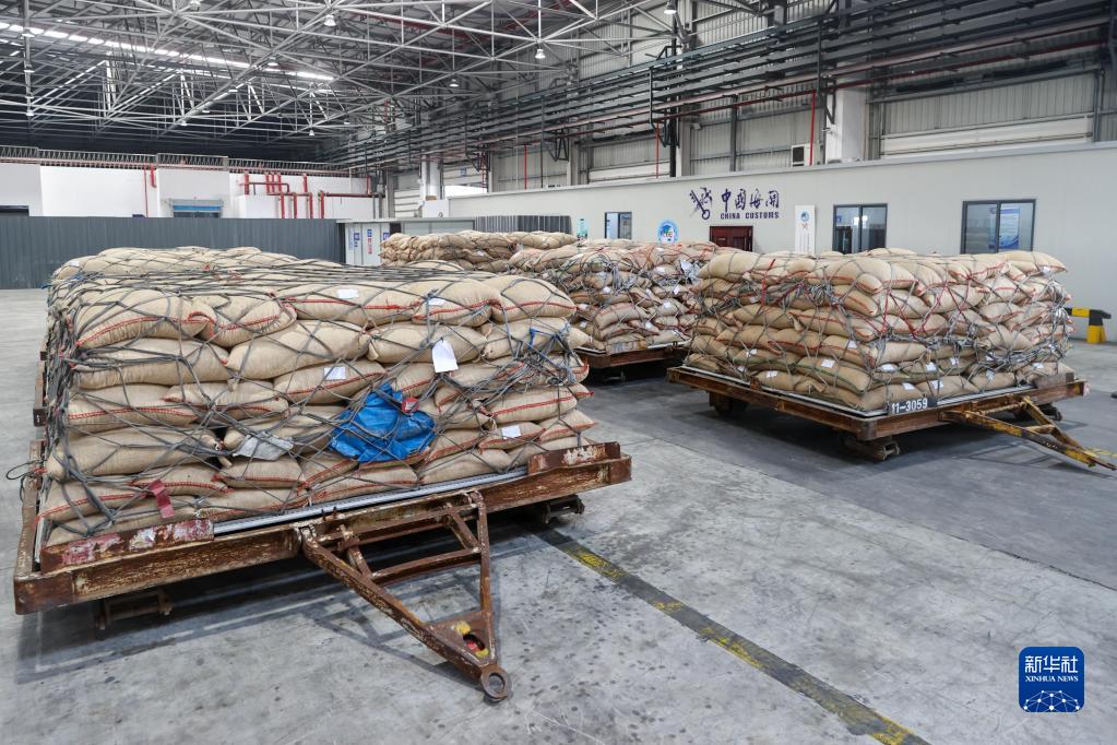 “这张标签连接起来的喀布尔和浦东,是中国与阿富汗之间目前唯一的一条货运航线,也是近来受到国际社会关注的中阿‘松子空中走廊’的缩影。麻袋里面装的,就是维系着众多阿富汗百姓生计的新鲜松子。”查验现场,浦东国际机场海关查验七科科长张书俊对记者说。