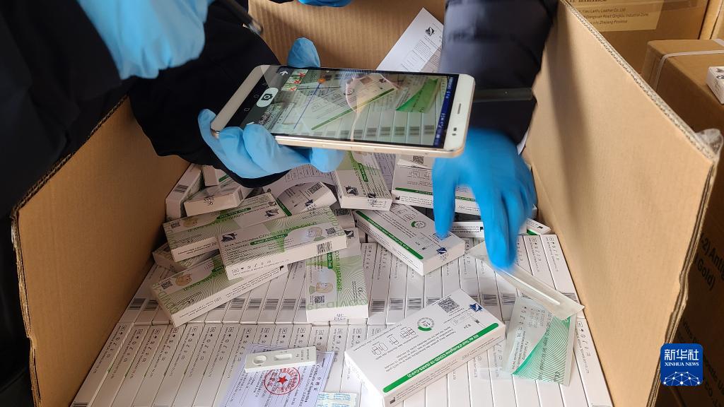 在一处出口商品查验点,记者与一批安徽企业出口法国的新冠病毒抗原检测试剂不期而遇。这批试剂共17万人份,可供个人快速检测。白绿相间的包装盒上,除了醒目的“COVID-19”(中文意为新冠肺炎)字样以及法文商品名称,还印有“CE”标志,说明相关检测试剂已获得欧盟认证。