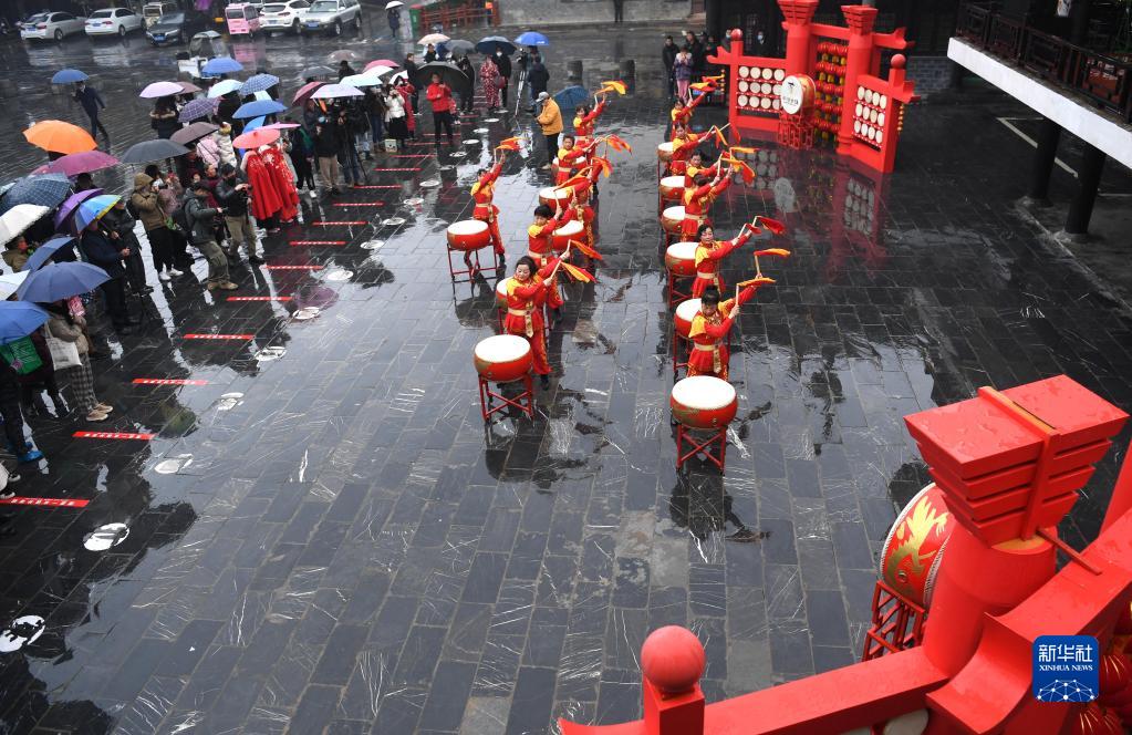 1月24日,民间文艺团体在合肥市肥西县三河古镇表演大鼓。