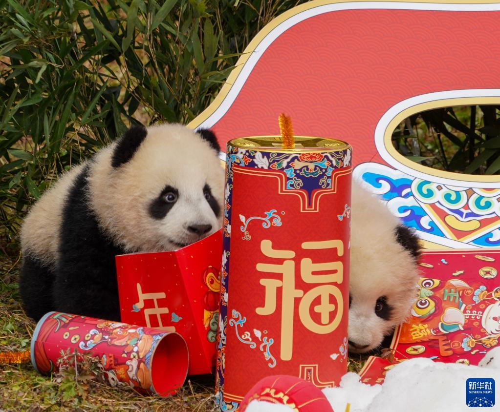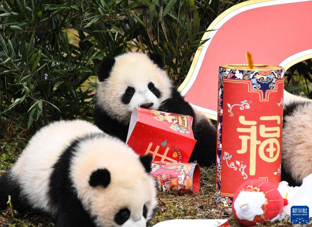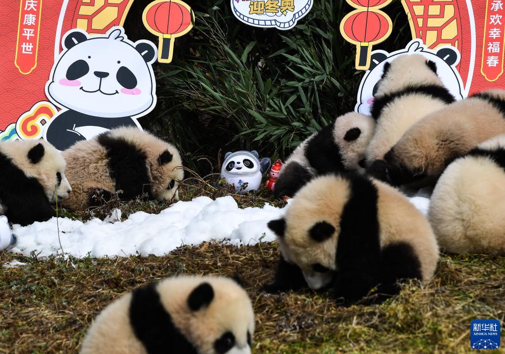 新华社成都1月24日电(记者余里)24日上午,中国大熊猫保护研究中心卧龙神树坪基地,20只半岁左右的熊猫宝宝集体亮相,向全国人民送上最萌的新春祝福。
