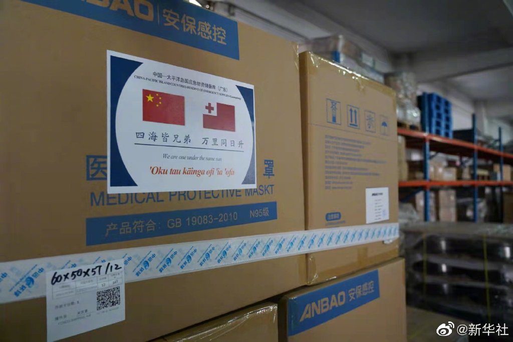 24日,由中国-太平洋岛国应急物资储备库(广东)准备的中国援助汤加物资,在广州白云国际机场附近一家仓库集结,即将运往汤加。这批物资包括饮用水、罐头肉、口罩、手套、帐篷、对讲机等。(记者王攀、马晓澄、陆浩)