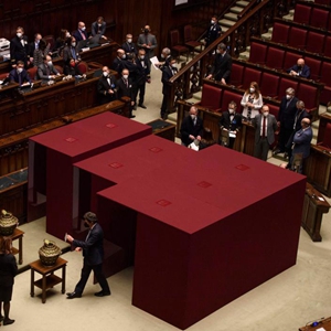 这是1月24日在意大利罗马的众议院拍摄的总统选举投票现场。